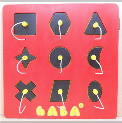 Consists of solid fagus made 9 different geometric figures and a platform carved accordingly for these figures.